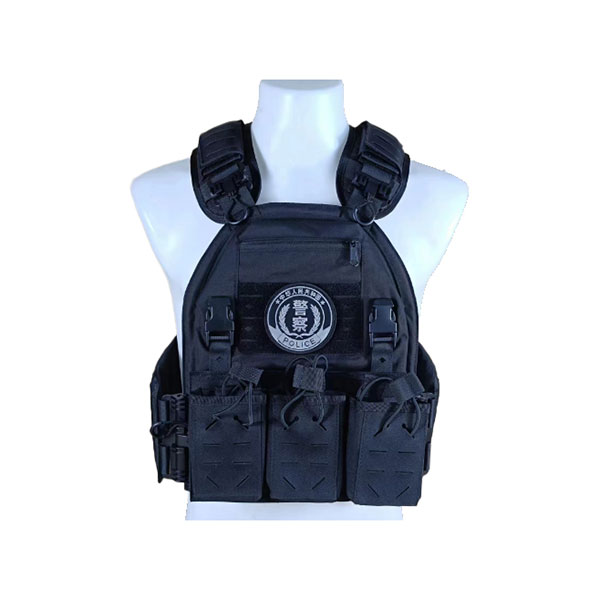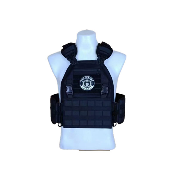 战术背心选用黑色涤纶牛津布制成,具有很强的耐撕拉性